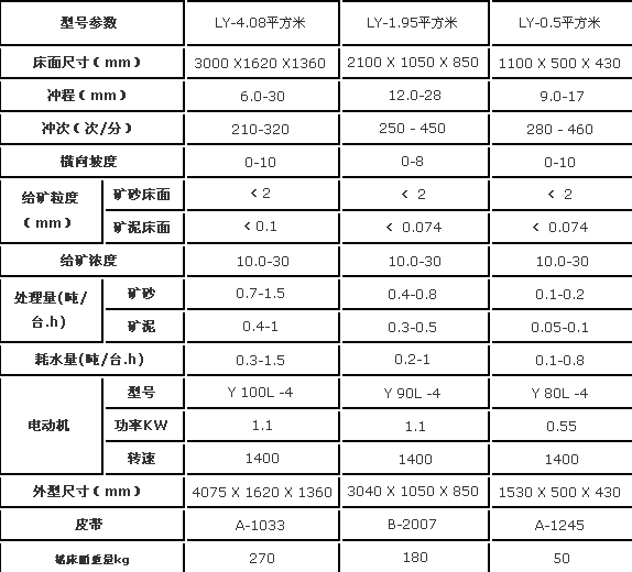 實驗選礦搖床參數: